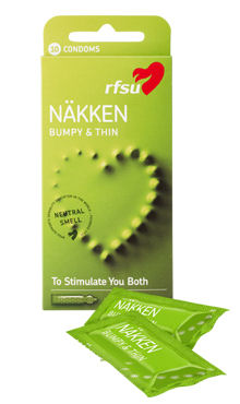 RFSU Näkken -kondomien nypytetty juomupinta lisää nautintoa ja on molempien mieleen. Väritön, kostea ja muotoiltu juomupintainen lateksikondomi säiliöllä.